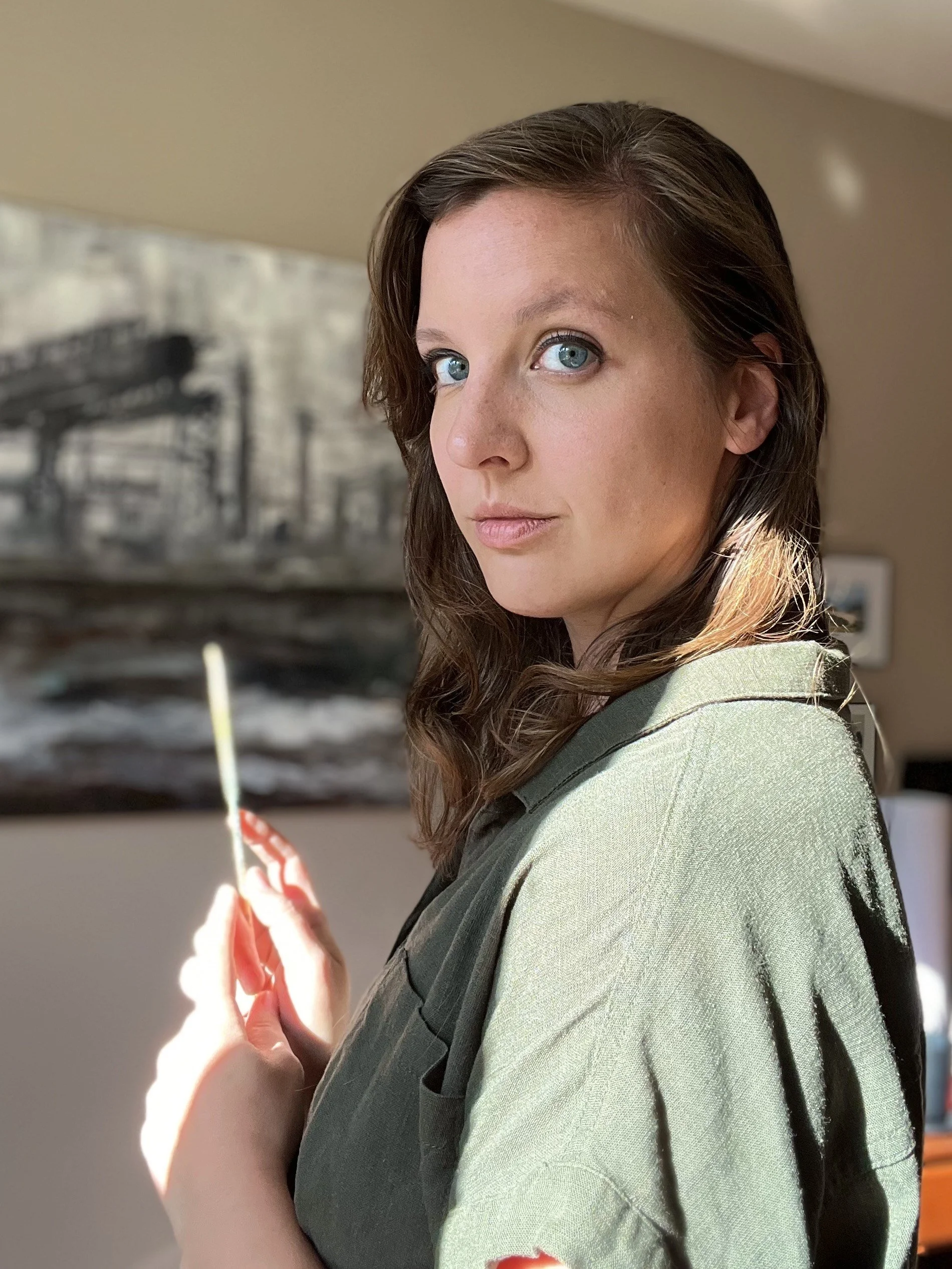 Jo graduated from Mount St. Mary's University with a BA in Fine Art in 2011, after studying fine art and film at the Carver Center for Arts & Technology in Towson, MD. Experiencing the beginning of the pandemic while pregnant rekindled her artistic practice, as it became a safe outlet with which to filter a growing awareness and suspicion of the unknown. Since then her work has been featured in several local and online exhibitions, including a 2022 solo exhibition in Baltimore dedicated to bringing awareness to women’s mental health through a journalistic series of portraits. Jo is based in bucolic Freeland, Maryland, where she celebrates life with her husband, young daughter and beloved dog.